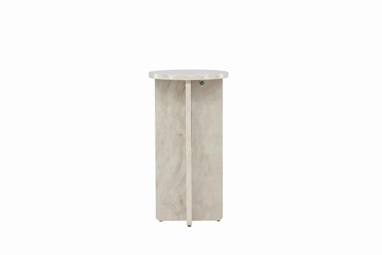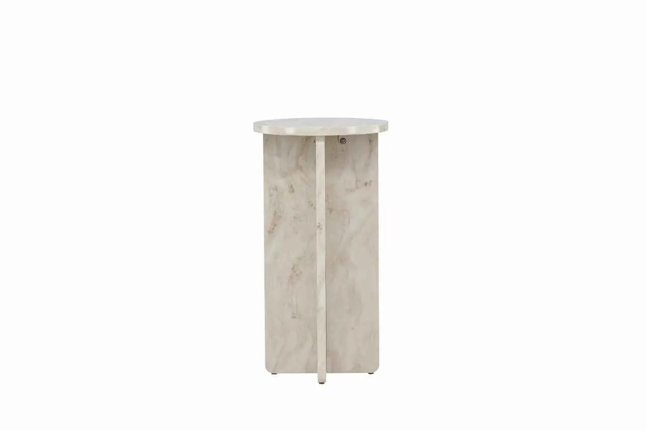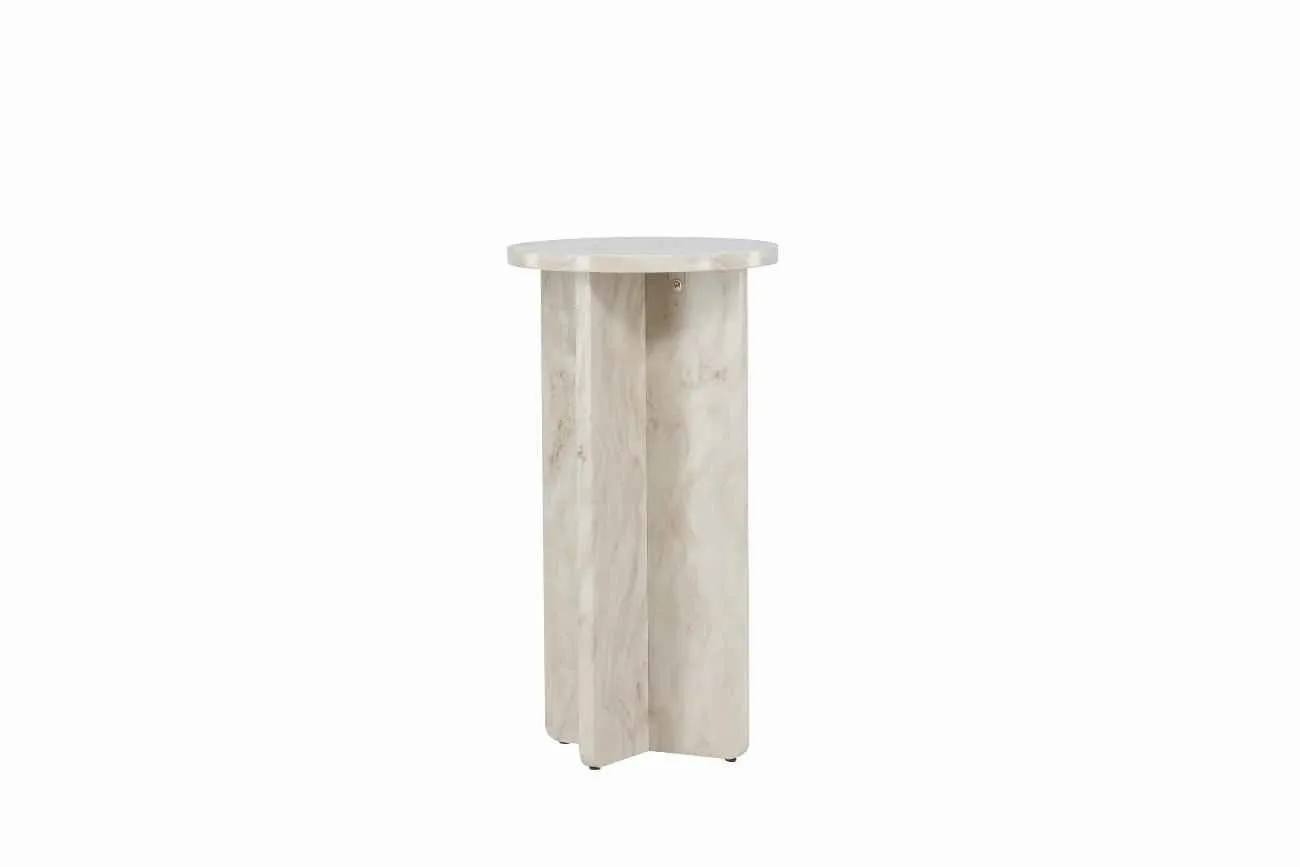 Ålesund sidobord är den perfekta kombinationen av skandinavisk elegans och modern design. Detta lilla bord är tillverkat av MDF-material och har en marmorlook som ger en sofistikerad touch till varje rum. Med sina mått på 75*40 cm är det idealiskt som ett sidobord bredvid soffan eller som en stilfull tilläggsmöbel bredvid sängen. Ålesund sidobord har en enkel och stilren design som passar perfekt in i alla typer av inredningsstilar. Den vackra beige färgen ger en varm och inbjudande känsla till rummet. Bordsskivan är rund med en diameter på 40 cm, vilket ger tillräckligt med plats för att placera en lampa, böcker eller andra dekorativa föremål. Med Ålesund sidobord får du inte bara en praktisk yta att ställa saker på, utan också en vacker möbel som förhöjer inredningen i ditt hem. Lägg till en touch av skandinavisk elegans och modern stil med detta fantastiska sidobord.