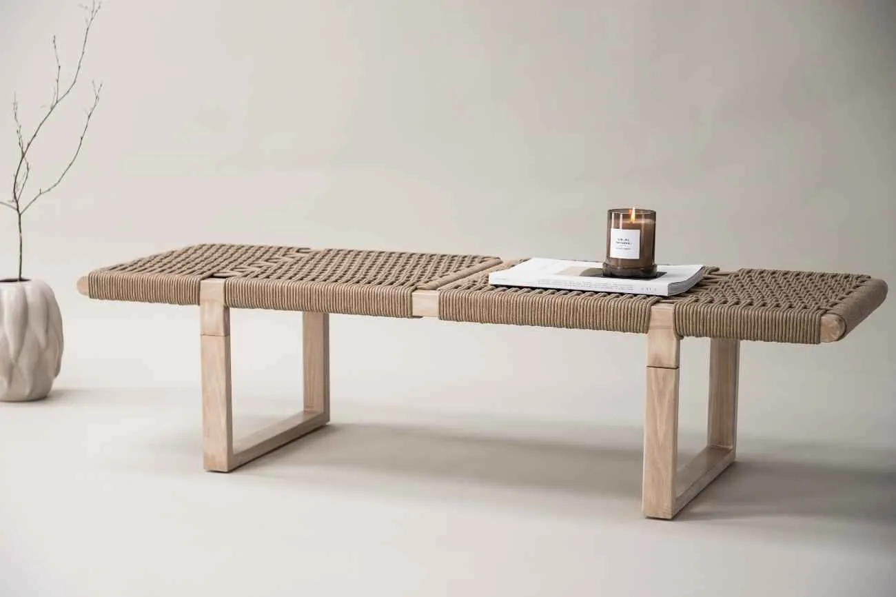 Ängön, en modern och stilren bänk som garanterat kommer göra succé i hemmet! Underredet har raka nordiska former tillverkat i stål och sitsen i slitstarkt beige rep. Den läckra kombinationen av material och jordnära kulörer ger ett vackert helhetsintryck till den smakfulla designen och bänkens praktiska storlek möjliggör brett användningsområde. Placera solitär som en schysst detalj till hallen eller tillsammans med soffgruppen för att öppna upp för fler sittplatser när nära och kära kommer på besök!
