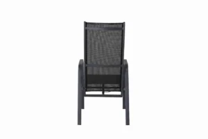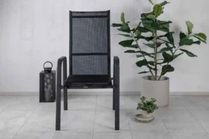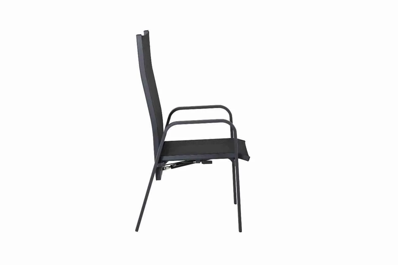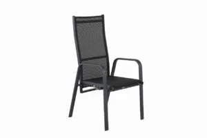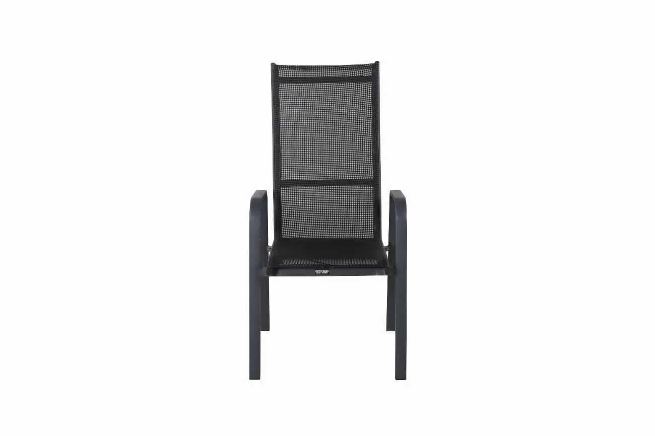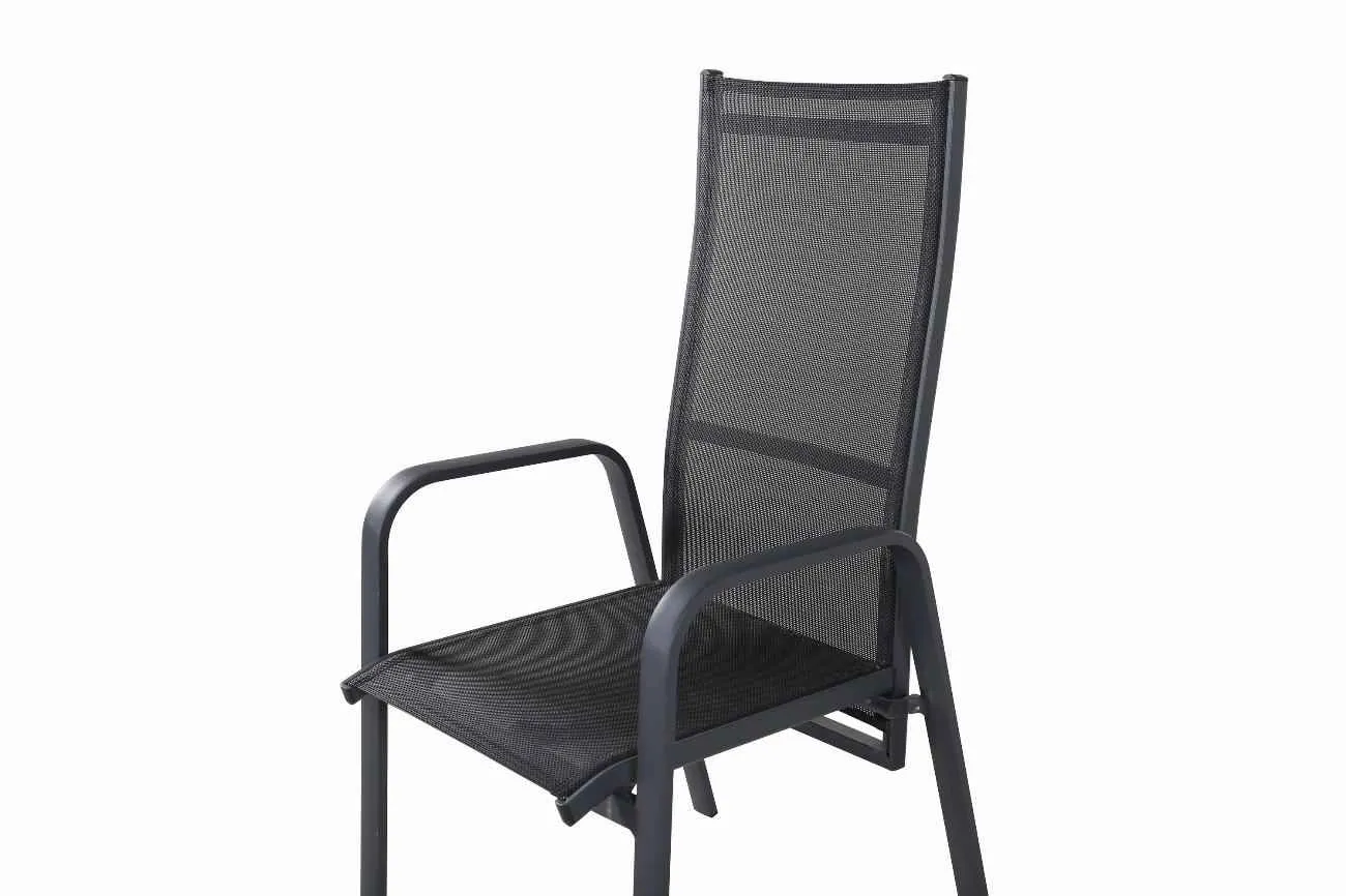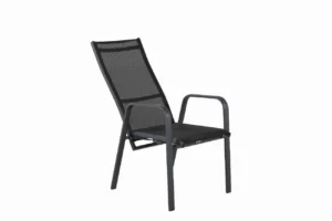 Copacabana, en modern stapelbar karmstol i svart kulör som gör sig utmärkt vid matbordet på altanen. Stolens ryggstöd går att fälla vilket gör att den är väldigt bekväm och praktisk. Njut av sommaren på allra bästa sätt!