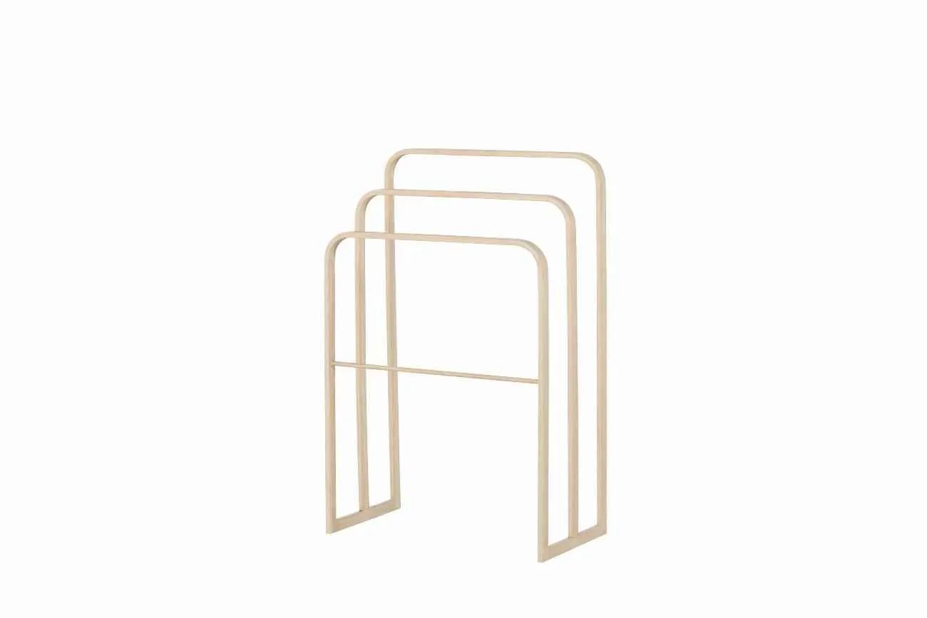 Drammen står stadigt placerad på golvet och erbjuder trippelkapacitet för att maximera ditt ordningsförmåga. Med tre hängare i en enda enhet blir det enkelt att hålla dina kläder organiserade på ett smidigt sätt. Den stilfulla designen gör Drammen till en perfekt följeslagare för dem som värdesätter både form och funktion.