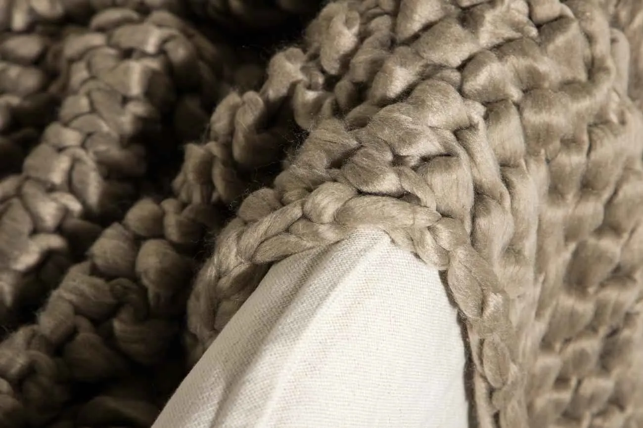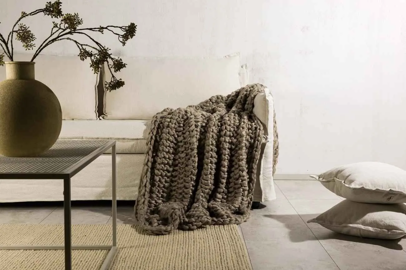 Gosa ner dig under den ljuvliga filten Kate med stora stickade maskor i polyesterfiber och skapa en oemotståndligt mysig känsla i vardagsrummet eller sovrummet! Filten är mjuk och len mot kroppen utan att stickas och med sina stora maskor blir det något alldeles extra och ögonfallande för din inredning samtidigt som den håller dig varm. För att bevara livslängden på dina textilier rekommenderar vi att vädra dem ofta och ta bort eventuella fläckar med fläckborttagning. Mått: 130x170