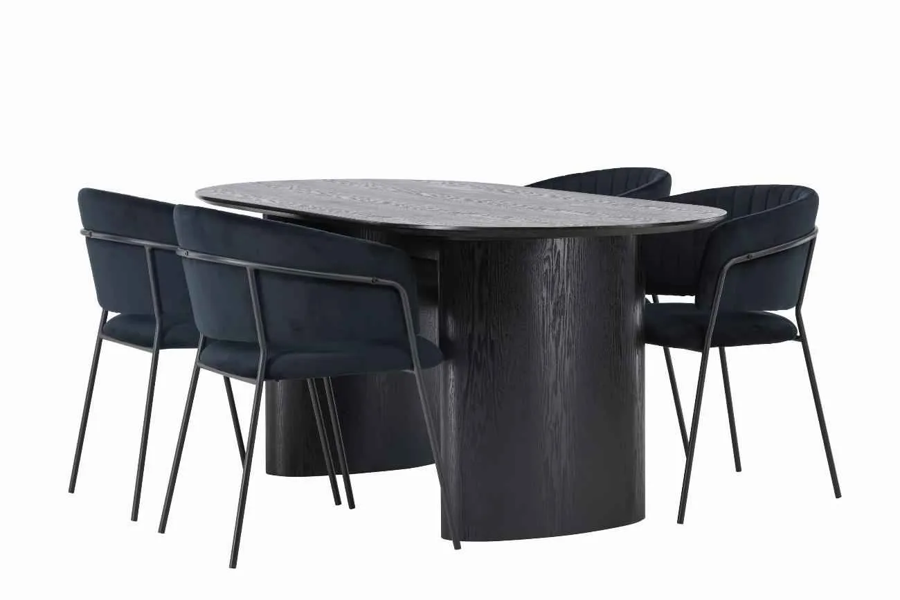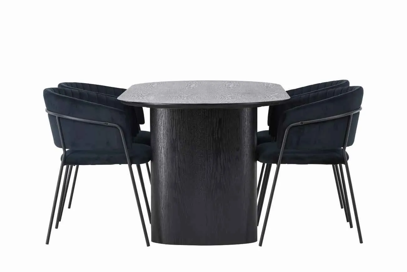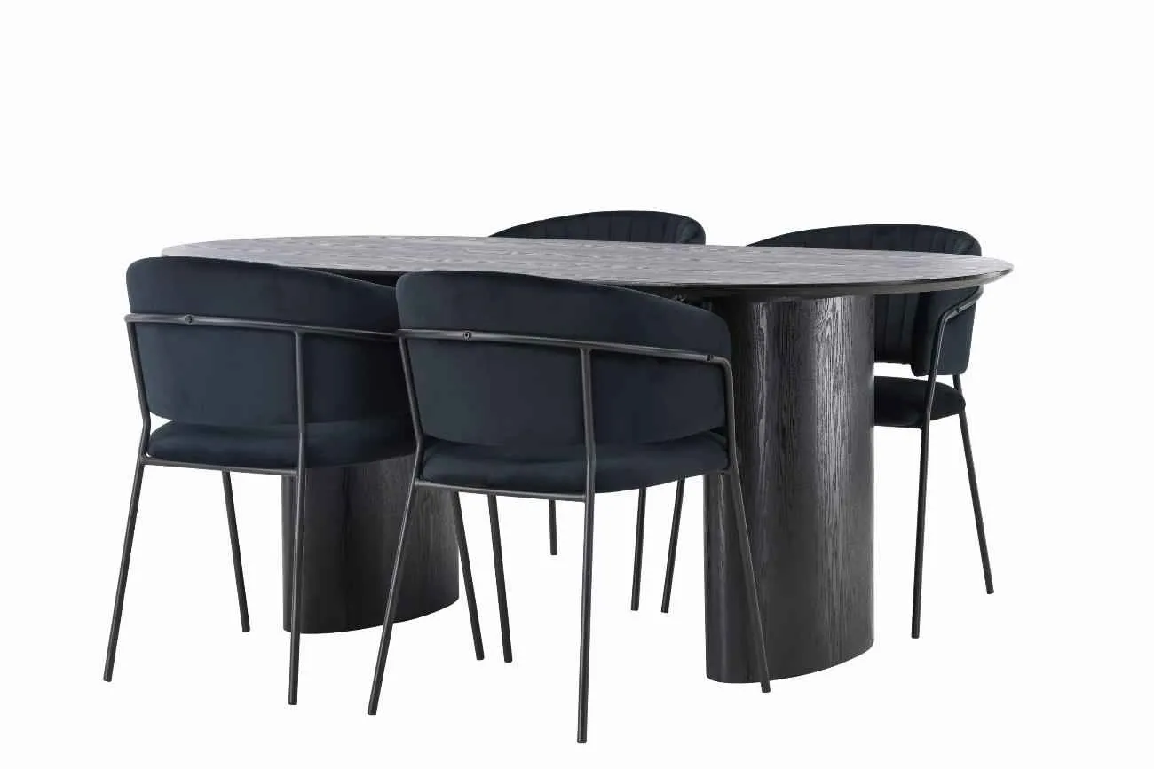 180×75 cm med 4 stolar