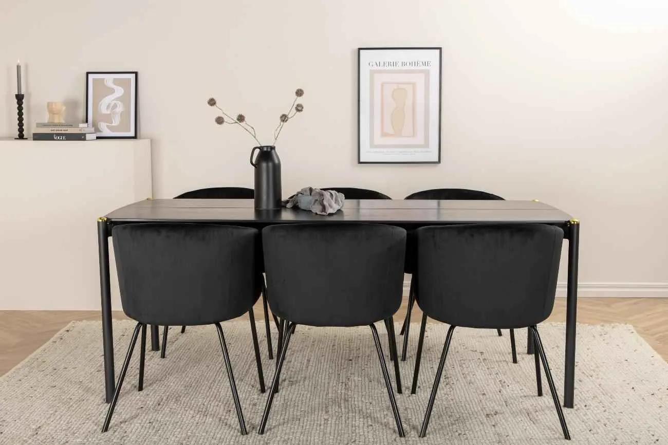 90×190 cm med 6 stolar