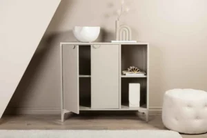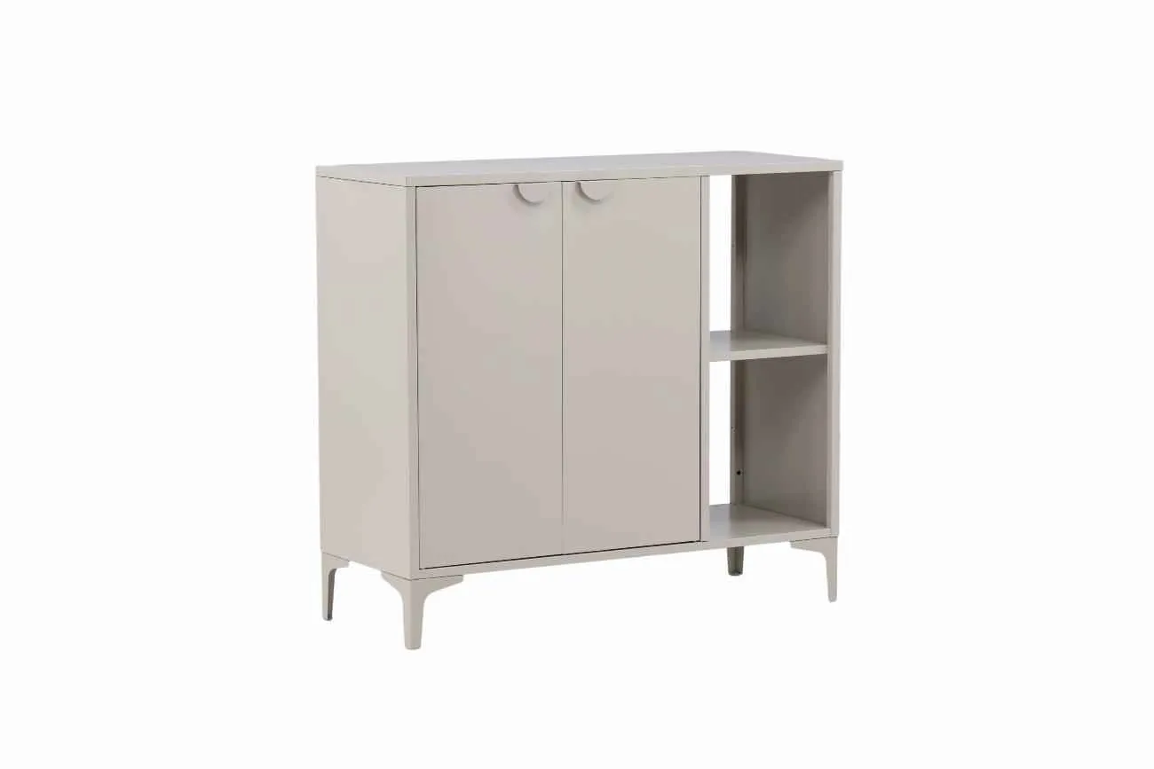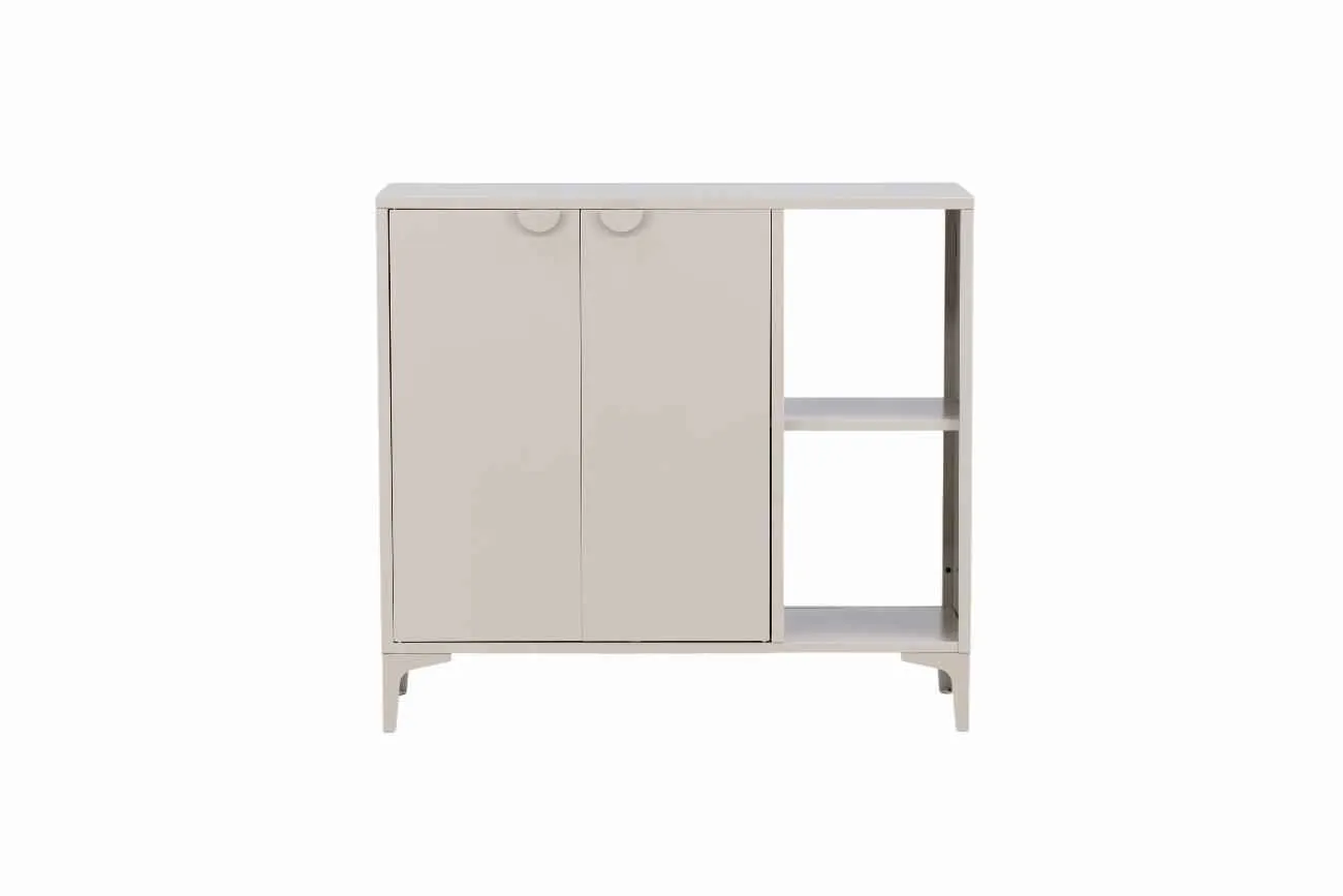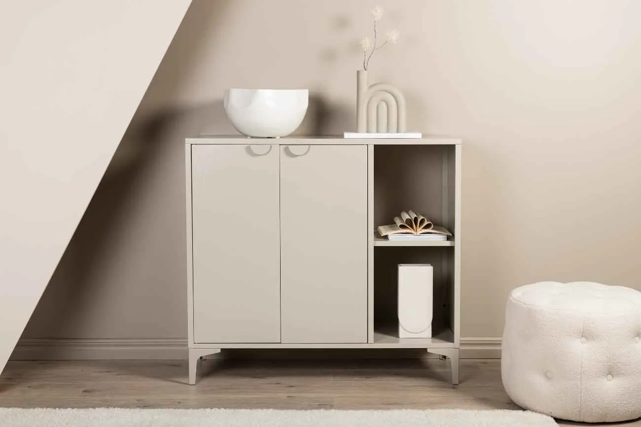 Ett avlastningsskåp i varm kulör är en lika snygg som smart lösning i ditt hem! Piring avlastningsskåp har en klassisk, industriell design i beige pulverlackerat stål. Skåpet har två luckor för dold förvaring och två öppna hyllplan som passar utmärkt för stilrena dekorationer och detaljer. Skåpet lyfts upp av smala ben som skapar en luftig känsla och underlättar även för dammsugaren. Den perfekta förvaringsmöbeln helt enkelt - fyll med porslin, böcker eller vackra dekorationer. Skåpets smidiga storlek gör den även lättplacerad och passar bra in i de flesta rum i hemmet!