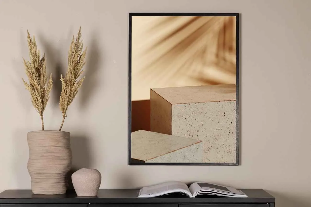 Mjuka upp hemma med fotokonst i sin bästa form. Detta härliga motivet ger en varm känsla av sommar och sol där palmbladen utgör skuggan över de solvarma stenarna. Kanske kan du drömma dig bort till varmare breddgrader, eller bara skapa känslan av ett mer ombonat och inbjudande rum! Kombinera med andra posters eller låt motivet ta plats på egen hand. Mått: 21x30 cm.